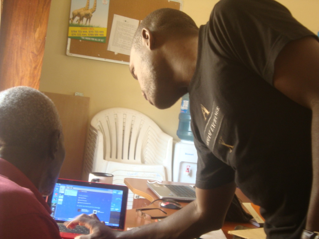 Veteran journalist John Muto Ono P’ Lajur learning new digital tricks. Mr Muto believes the media–both regional and national did not cover well the Peace, Recovery and Development Programme(PRDP).